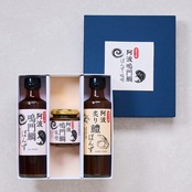 徳島(阿波)の風景を感じられる絶品ギフト、「阿波 鳴門鯛ぽん酢・炙り鱧ぽんず・鳴門鯛味噌ギフト」。国内・海外問わず、お土産や贈り物に最適です。鳴門でしか味わえない鯛の旨みを凝縮した鯛ぽんずと、老舗の味噌で作る風味豊かな鯛味噌、さらに徳島産鱧(ハモ)から贅沢な出汁をとった炙り鱧ぽんずの三種類の組み合わせで、ご家庭で本格的な阿波の味をお楽しみください。